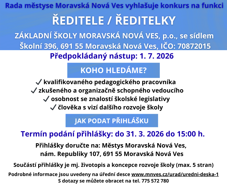 Mateřská škola Hrušky oznamuje rodičům, že Zápis do MŠ Hrušky se koná v úterý 31. 3. 2026 od 10,00 do 16,00 hod. v ředitelně Mateřské školy Hrušky. Současně proběhne Den otevřených dveří.