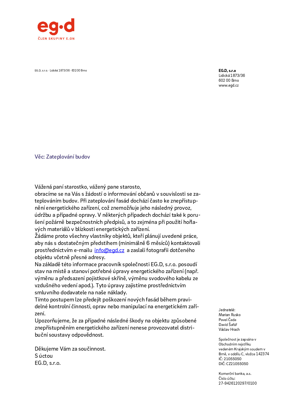 Jedna z výhod obce spočívá v její výjimečné dopravní obslužnosti, leží na hlavním tahu Rakousko – Česko – Polsko a 4 km od dálniční komunikace Praha – Bratislava.”